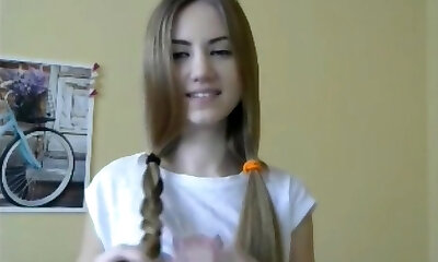 AMATEUR Teen HADNJOB AND CUMSHOT ON HER PANTS , close up