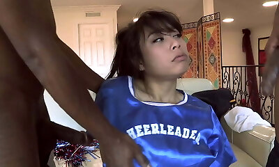 Asian teen May Lee Takes 2 Big Black Cocks