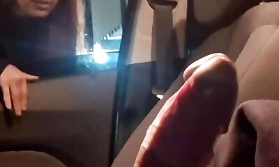 Busty teen display tits and grab schlong in car to stranger