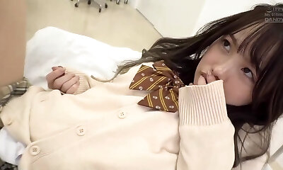 Red-hot Asian babe in school uniform gives a nice blowjob