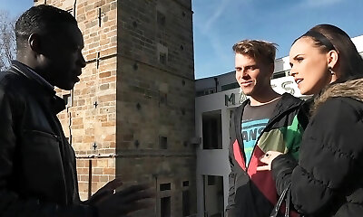Black honey enjoys the erected cocks of her two white lovers