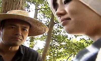B2I0802-Middle-aged men and women who have cuckoldry in the open air under the forest