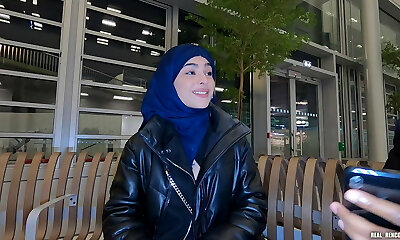 Iranian lady Nadja is dressed in a hijab and gets anally fucked in the wc and in a hallway to pay for the plane!!!