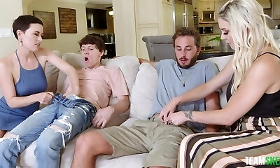 Enjoy sex-positive bitches swapping dudes during bisexual swinger fuck