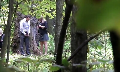 Teen couple is fucking outdoor and voyeur watching them