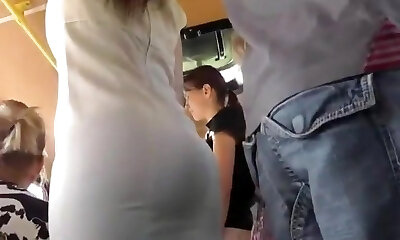 Upskirt Tight White Sheer Thong On Bus