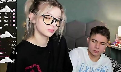 Amateur young stellar couple posing on webcam